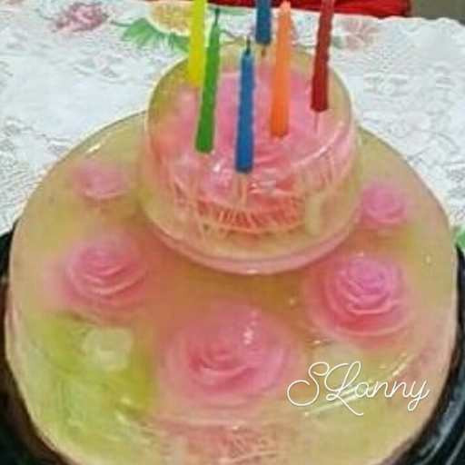 Pudding Cantik bentuk bulat 2 susun, bisa untuk perayaan ulang tahun dan acara spesial keluarga.